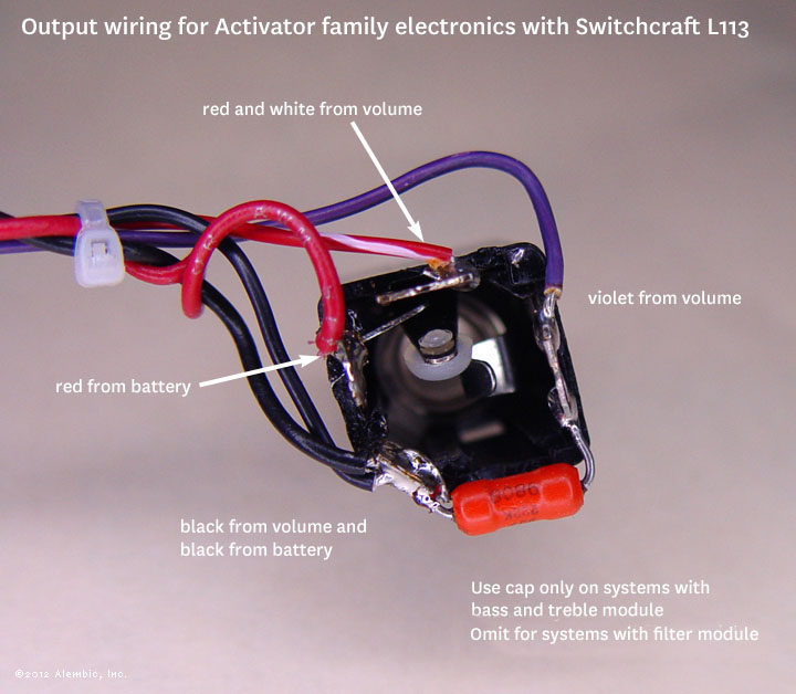There's 2 different output jack available on these basses. The original is a Switchcraft L113 and is wired like this: