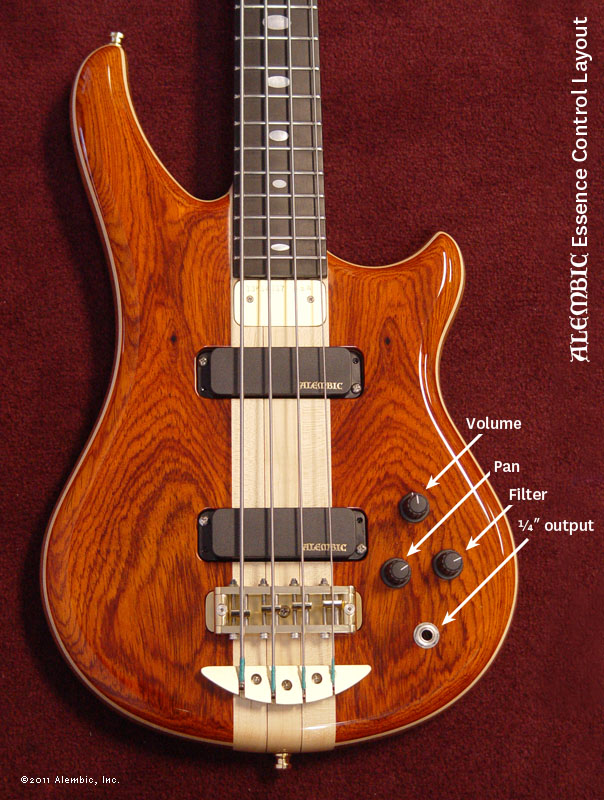 The Essence controls are volume, pan, and filter.  The filter is a low pass filter and is variable from 350Hz to 6000Hz.  When the filter is set fully to clockwise, all frequencies are being passed.  As you roll back on the filter, you lower the threshold, above which no frequencies are passed.  On the Essence, there is an 8db boost at the threshold frequency of the filter control.