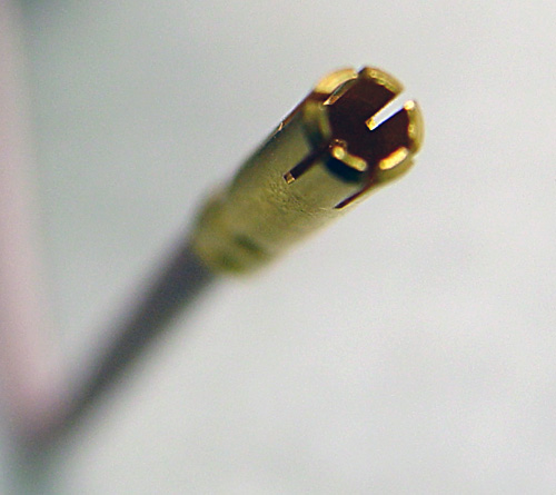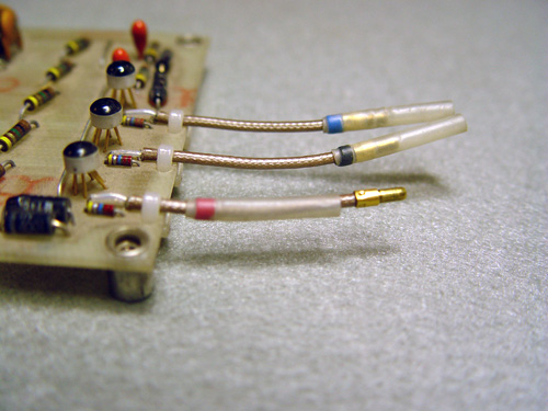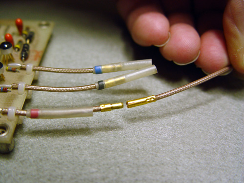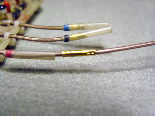 The first Alembic basses and guitars used a gold coaxial connector between the preamp card and the pickups. Here's an example of what one looks like connected: