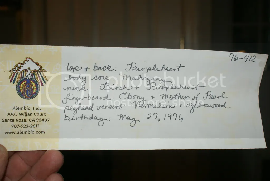 Just to clarify, the card there reads #76-412. That number rang my bell, (because it's close to a couple more I know) and here's a thread on it from a while back you must have found. https://club.alembicguitars.com/index.php?topic=21981.msg222364#msg222364