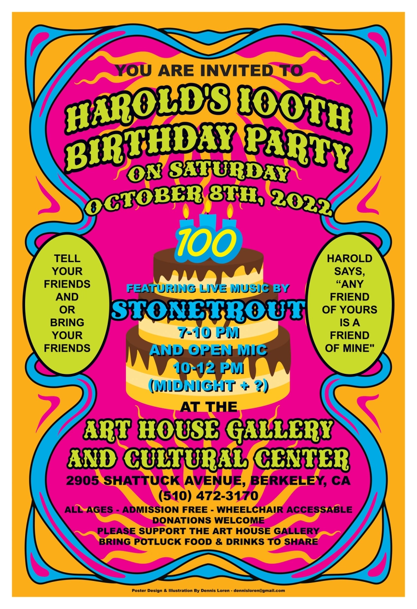 This Saturday, my band Stonetrout will be playing our first gig with an actual live audience since the pandemic started!   We’ll be at the Art House Gallery & Cultural Center in Berkeley helping the owner celebrate his 78th birthday (he’s not really 100 … false advertising … hehehehe).   Admission is free with donations accepted.  People bring food to share for a fun pot luck, though it’s not required.  The place is a real slice-o-life right out of 1960s Berkeley, complete with black light posters, lava lamps, People’s Park photos (the owner, Harold, was a hippie photographer back in the day).  And, for us youth-challenged folks, the gig is from 7-10:00.  No load-outs at 2:00 a.m.!    All of my Alembic brethren in the area are welcome.