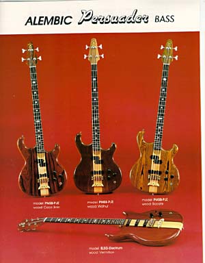 Thanks for the help.  By the way, I just saw what you posted about the recent rise in fake Alembics.  I actually got a to good to be true deal on mine.  But from my inspection, not to mention that I trust the dealer, unless he was also tricked, ?t seems 100% real.  Is it possible for you to post a pick of a persuader bass for me to compare mine to?  The only thing about it that I've never seen on one of your basses is the type of knobs on it, but that could have been changed by the owner, so that isn't a reason to think it is fake.  it seems 100% real.  the serial number is exactly how and where it should be.  The logo is in the right spot.  the electronics are the connector type kind you use (the ones that don't require soldering, just snap the connectors together) and so on.  But maybe I could use something to compare it too.  I do have on question though, and I might not be able to accurately ask it with out showing you a picture, but the jack of the instrument cord... last time i looked at it, i thought it was a closed jack (meaing that if i took the control plate off i couldn't look from the outside of the jack and see the rest of the control compartment because it was open ended on the inside.  but then one night i heard something making a rattle noise inside of the bass when i moved it, and when i took the cover off, i noticed that the jack was open.  you could look at it from one side and see straight through it (as opposed to jacks that are closed on the inside).  i was wondering if i broke the back off of it, or was it open anyway.  and if it was open, i couldn't figure out what was making the rattle noise.  it stopped after a few times of turning the bass up and around.  it sound like something moving around inside.