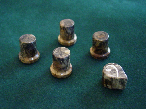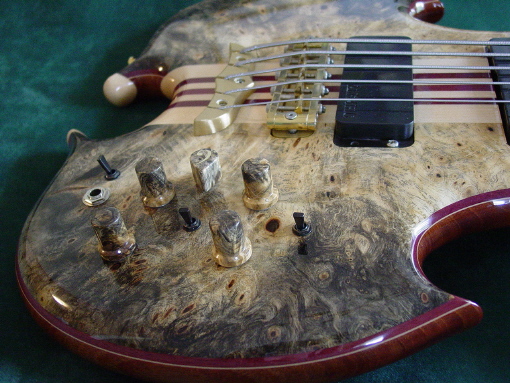For anyone interested, Roger has some fine Burl Buckeye at his shop, and fixed me up very nicely last week with a new set of knobs. I had visions of fancy inlays everywhere, but Roger said no, that he would hate to interrupt the swirls in the Buckeye, and I'm glad I listened. Smart man, that Roger, and damn talented, too.