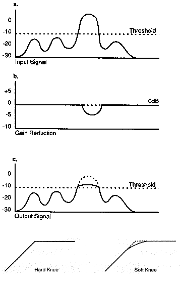 Adriaan is pretty close in his post ? THRESHOLD sets the level at which compression will begin. As long as the signal level is below the Threshold level, it will not be compressed. Once the signal goes above the Threshold, compression starts (this is how Davehouck uses it with his thumbed E string), How much compression depends on the Ratio setting. For example if the RATIO is set to 6:1, the signal level will have to be 6 decibels above the threshold for the output level (what you hear) to rise by 1 decibel.