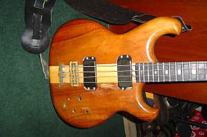 Looks like a Spoiler. There should be a serial number on the fretboard at the end just above the neck pickup. It's hard to tell much from the picture. It looks like the pickups may be mounted incorrectly and the neck pickup looks like it may be broken where one of the screws should be. There may be a gouge between the pickups, or it may just be glare. It looks to be an earlier model Spoiler since the neck pickup is closer to the neck than on the later models. Also, if it's an earlier model, it may be a solid Koa body; and it does kinda look that way in the picture. If the price is right, it could be worth going to see the bass if you can, or getting someone from the club to look at it (if there is a member in that area), or getting more and better pictures and more info. A picture of the inside of the cavity might be helpful. If the electronics were replaced with non-Alembic guts, then chances are the connectors from the pickup leads were removed. If the condition is otherwise good, contact Alembic for a quote on replacing the electronics, add that number to the offer from the seller, and then compare that to what you can get a good used Spoiler for. If everything works out, this good be a good deal. One other thought, you would probably want to have the logo replaced, and if I remember correctly, Alembic can not ship these out. So when you call Alembic about the electronics ask them about the logo too.