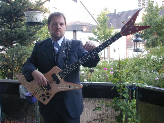 Anyway, I was leafing through it the other night, looking with longing at some of John's Alembics. However, on seeing the photo of his 4 string Spider, something struck me as odd about it. It's got the names of the notes inlaid on the fretboard instead of the usual dot markers, apparently to help John overcome bouts of stagefright. All fair enough so far. But . . . unless my eyes are playing tricks on me, at the 9th fret (and the 21st) on the E string, instead of C#, the note name inlaid says D#!!?? Surely shome mishtake? Or is this one of John's in-jokes?