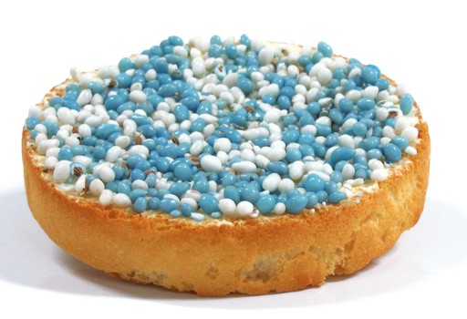 Here's something dutch, I think. Something we eat when a baby is born. Beschuit met muisjes.