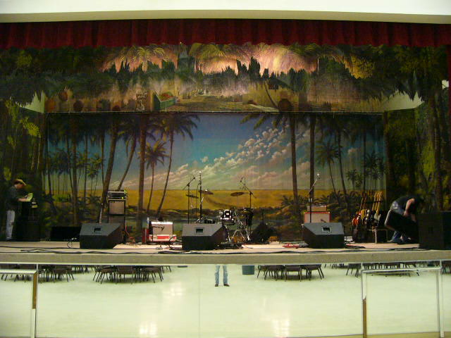 Last Saturday we did a benefit show at a Shriner's hall in Atlanta.  It was a huge room, about 75 yards long, with a great carpeted stage.  Almost felt like we were playing in an office.