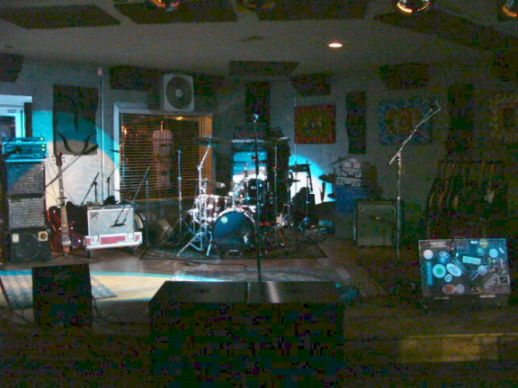 A few songs into the set I started getting queasy, until I figured out that the stage was moving just enough to upset my equilibrium.  It was hollow, and quite boomy, so I had to cut a lot of my bottom end. There was still plenty, and I was getting a lot from the mains, which were at the front edge of the stage. Overall, I wasn't really ecstatic about the sound.  I hate the sound of new strings, and these are still pretty new, so it was just too zingy for me, and if I rolled the filters down too much, it lost too much definition.  the engineer loved it though.  He said he ran it flat with some compression.  Last night, we played in Carrollton, GA at the Off-Campus Bar & Grill.  This is a great little town and a very cool bar.  It's unusual in that the standard racial barriers don't seem to apply here. Everybody seems to intermingle freely, and they were all groving on both the country/rock we were playing and the hip-hop between sets.