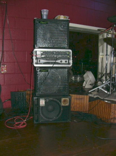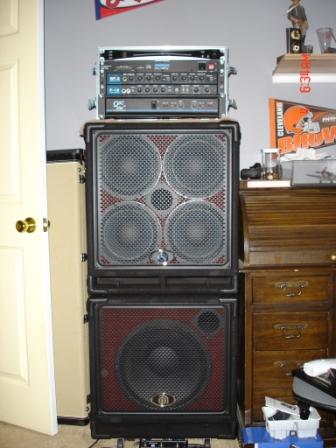 Cabinets are 1 Eden 12 and 2 Bergantino 12's.  I have another Eden 12, but haven't felt the need to use it yet.  Maybe for the outdoor show we have coming up...