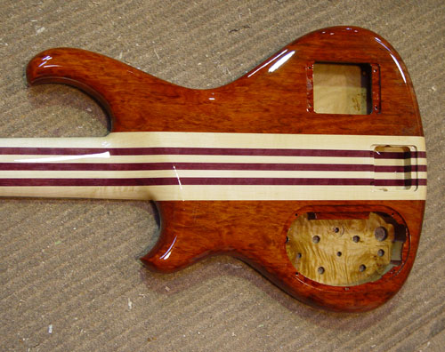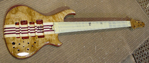 As you've read, if you are having an instrument built from scratch the fine folks at Alembic will make the neck to your custom specs. For my first custom order, I sent the gang an old Tobias that had what I thought of at the time as the most comfortable neck I ever played and they copied it