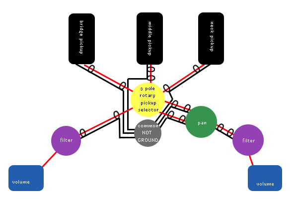 Then all your switching can just be in the hot leads of the pickups/filters. This should get Chris what he needs to know.