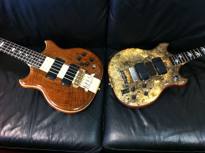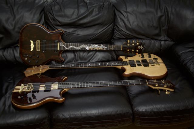 My bass got to meet Stanley's bass at the mothership while it was in for new nut & saddles for tenor tuning!