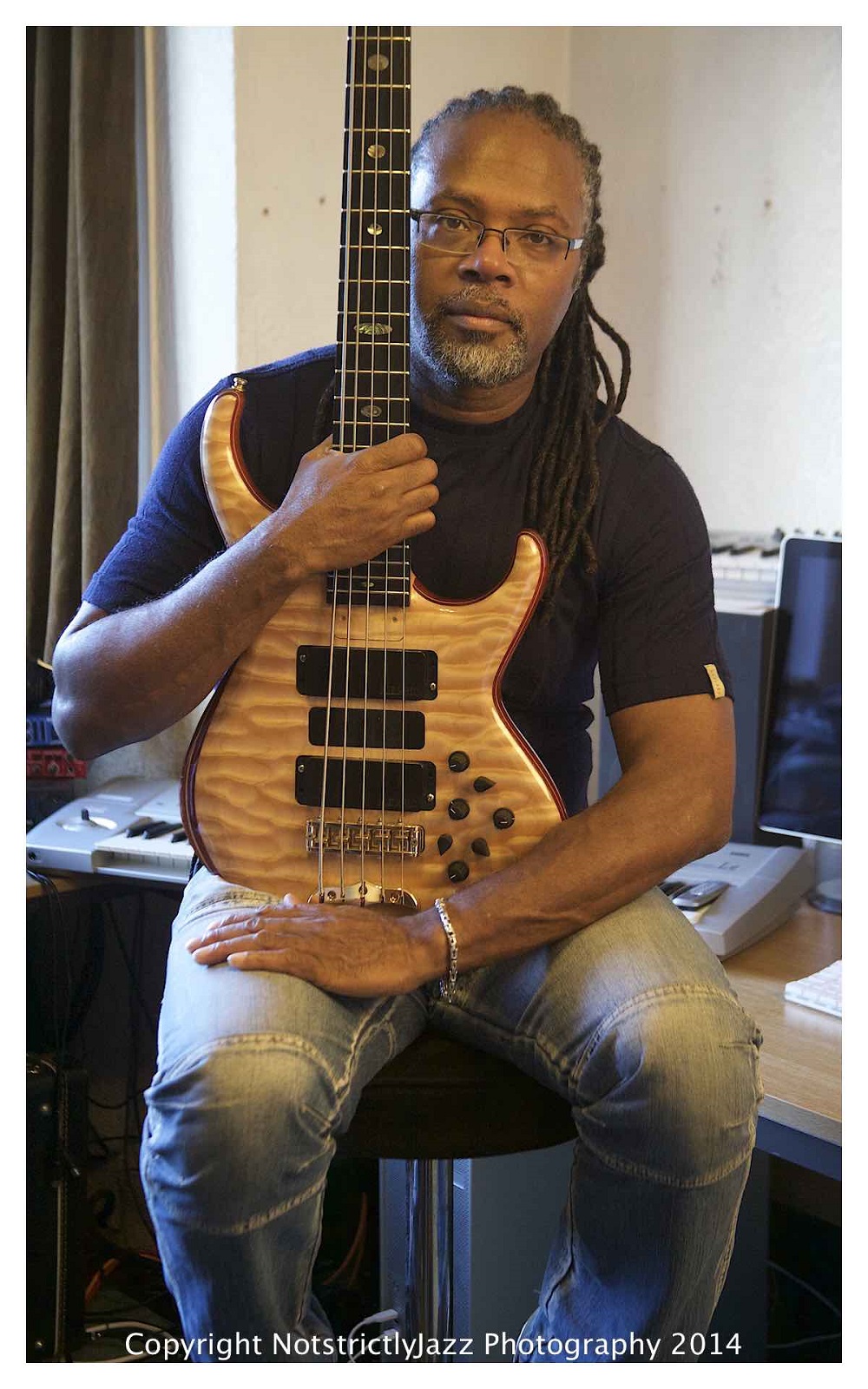 Here is a static picture taken today by my other half after shooting my part in the video I'm doing for my Grover Washington 15th year commemoration concert. It kind of shows my connection with the bass.