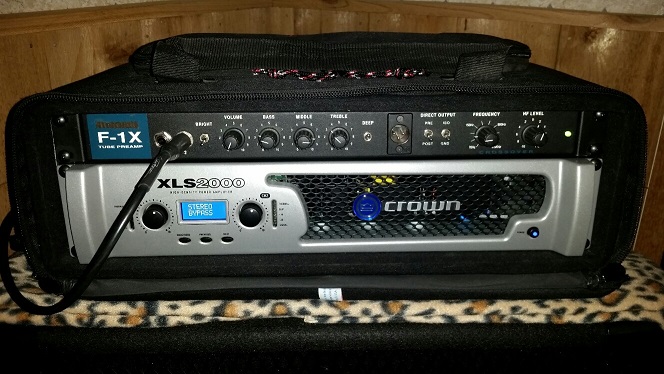 Spent a little time playing with this last night, and I have to say again how much I love this F-1X. It's just amazing how much versatility is in that one box, even (and especially) with other basses than Alembic-made ones, but my Persuader just requires less tweaking and twiddling on the front.   So, I put the Crown amp into "STEREO BYPASS" mode, (which is actually it's default setting) and used a second 1/4" TRS-to-XLR cable to connect both the Low-Pass and High Freq. outputs of the F-1X to Channels 1 & 2 inputs respectively. (as Elwood suggested)