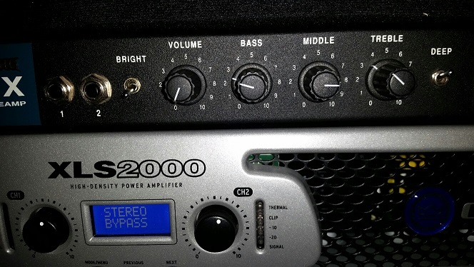 Currently, I'm taking the F-1X's full-range output to Channel 1 input, and using the amplifier's on-board crossover to send 94 Hz and lower to a designated LF cabinet. The frequencies above are going to a pair of full range capable cabs with an equal (or close) impedance to the LF cab. (I'm putting a 4 ohm load on each channel, which as I understand it is capable of a 2 ohm minimum)