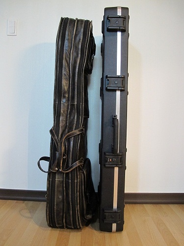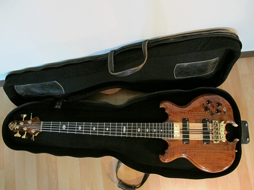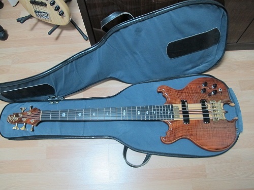 Was thinking how to title this thread as it is really to do with gig bags, but hope the title I chose raises a giggle though !   So the story so far, I bought my Alembic after researching and looking for years, and was of course so excited having found one and at the thought of it arriving., My Alembic did not have a hard case and was advertised with the original Alembic gig bag. During the negotiations I requested a hard case be included in the deal just to protect the bass during shipping, I am currently on work assignment in South Korea, so the trip California to South Korea is quite an ordeal. The shop told me that they struggled to find a case that would fit, I said that it didn?t matter what type of case they could find as it was purely for shipping. So the big day arrived when the bass finally arrived at my apartment in a very big shipping box, my wife started complaining straight away as it was another "toy" for me, now imagine both our surprise when I opened the cardboard box and we both saw...........the coffin !!! I immediately told my wife that she should stop complaining, as the coffin could be used for something else !!! Opening the coffin case the bass was well packed inside to stop it moving, if you take a close look at the pictures you can see that it is possible for the bass to slide and bash the headstock, it would have to be an extreme bash to make it move,  as when the lid is closed the internal padding holds everything in place, the shop fitted extra packing just to make sure it was well snug on its long journey, but I have to say doesn?t that red interior just look so, well Dracular'ish, sorry bad word. Over the past few weeks I have been trying to find a good gig bag, I know a lot of folks will not be happy to put their pride and joy in a gig bag, but for me anyway, it is a practical solution and I do not need to carry it very far. The problem though was trying to find a good quality gig bag that would accommodate the size of the  Alembic, I researched and researched but could not find one that would fit, and give good protection. One evening I made a full size tracing of the whole bass on pieces of A3 paper, much to the amusement of my wife, I did enjoy reminding her of the many uses a coffin case might have !!! the following morning at work I scanned each sheet of A3 paper so I could email my bass in full size to various case and bag suppliers. First time around I sent it to Levys Leathers, their bass gig bag looked very smart and the dimensions looked good, unfortunately they replied that my bass would not fit in their case. Further research found the Harvester leather gig bags, they looked very smart, I started the emails and phone calls to the US distributor, Access bags and cases, Tim Ellis over there was just so helpful and even humoured me by agreeing to print off and cut out my Alembic bass in full size and try it in the gig bag, I did forewarn him that as an Alembic owner he could consider me as a geek !!! All looked good with the fit up of the A3 sheets and the bag was big enough to take my Alembic the only concern being the angle of the neck and headstock, as most bags are made to fit a flat pack type of bass, we both agreed that over a period of time the Harvester leather would become more supple and the bag would curve more readily when the bass was fitted inside, Tim also asked if I might consider a double bass bag as the internal compartments would offer greater flexibility, I was also thinking about this but from the perspective of cutting the centre section out completely and then using some foam packing internally to accommodate the curvature of the neck and headstock a  rather drastic action, so I let Tim know I was having a think about the options. The following day Tim sent me an email with a proposition that I might find interesting. Somebody had returned a bag back to the shop, a double bass bag, the reason for the return was that one of the metal securing rings on the rear of the bag had snapped, these are used when using the bag in a back pack mode, the main carry handle being in perfect order, Tim said if I was interested he could let me have the bag for a quarter of the normal price, I said yes please & how much to ship to South Korea ? So the bag arrived, it is a very good bag, Tim sent a replacement set of rear straps just in case I wished to fix the broken securing ring, the leather is very good quality and considering that it is a double bass bag, it is not too big. My fender jazz bass fits in it perfectly as a flat pack bass, the Alembic fits in it nicely, although with both bass's fitted the curvature of the Alembic neck and headstock will need some foam packing for proper support, I was going to fit this anyway, and it is unlikely I will carry both bass?s at the same time, but overall I am very pleased that I have something to transport my Alembic, even though it is a gig bag and not a hard case. Attached are some pictures showing the original Alembic gig bag, the coffin case and the Harvester leather gig bag, the Harvester bag has both bass's fitted inside and is shown next to the stock Fender hard case for comparison. The gig bag option will not work for everybody for the obvious reasons, but it works for me at the present time...............but just take a look at the red lining in the coffin case..............so sexy..........or is it the base that looks sexy ?   All the best, at this moment in time from South Korea.   Andy