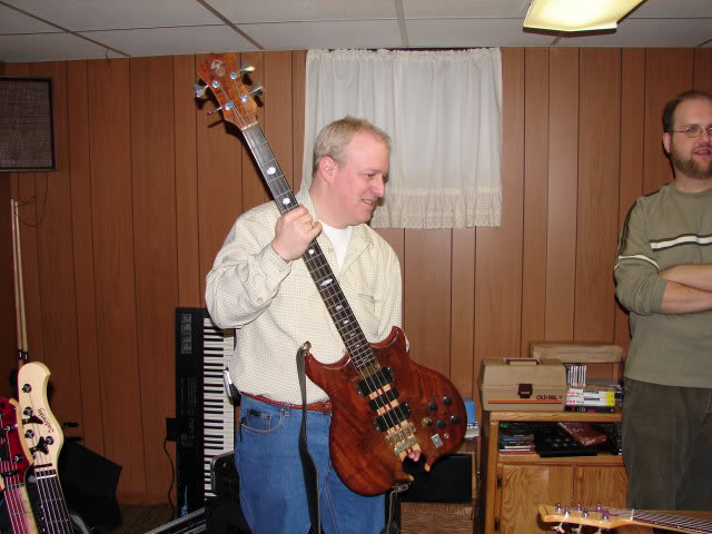 A few years ago I went to a GTG in northern Ohio.  A bunch of guys from Detroit, Cleveland, and Indiana showed up.  Most of them got a chance to play 87-4431.  The lucky guy in this picture is Detroit bassist Steve Burk.  I think that's his Sadowsky casting a jealous glance.
