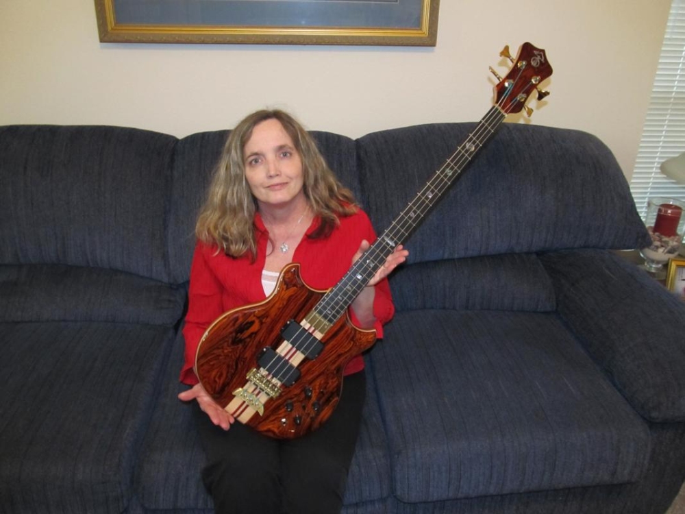 This is the only shot I have of anyone else touching my Alembic. This is my wife holding it the day I got it. She was scared to death & didn't want to touch it!