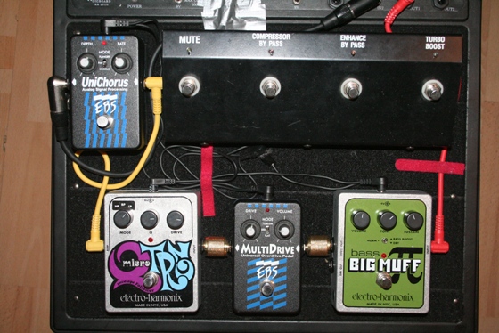 Just the 2 EBS pedals george - Chorus and Overdrive. I didn't have the Qtron or big muff that long ago. Once we get the next reunion on the go you'll be able to click away to your heart's content.