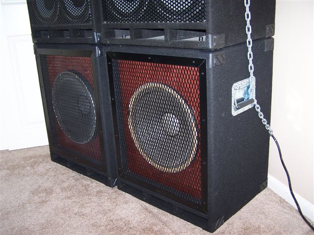 My brother and I just finished building some new cabinets for my JBL E-140 and E-145 drivers. They are tuned and vented to match the drivers and we made the outer dimensions so they would stack on my Eden 4X10's. They sound great in this setup with 1 Crown PB-3 amp is stereo mode using the bi-amped outputs of the F1-X. But I will be trying them soon using 2 PB-3's, each run in bridged mono using the bi-amp outs for 3000 watts total, the neighbors will like that. Willie