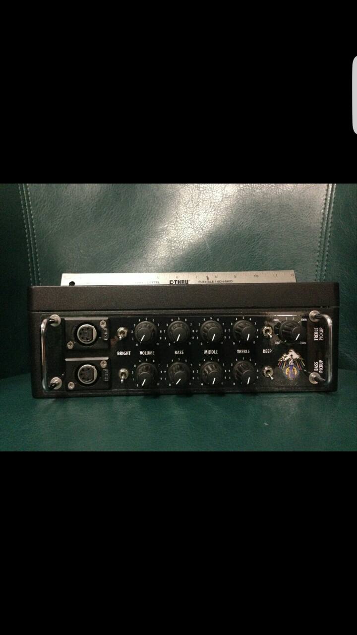 Very small 5lb preamp that will fit in a carry on bag. Has 2 channels, power supply,  2x 5 pin inputs, and 1x 1/4 mono input., 2 x effects loops, 2x XLR DI Outs, 2 x 1/4 out pre-eq, 2 x 1/4 out post eq.