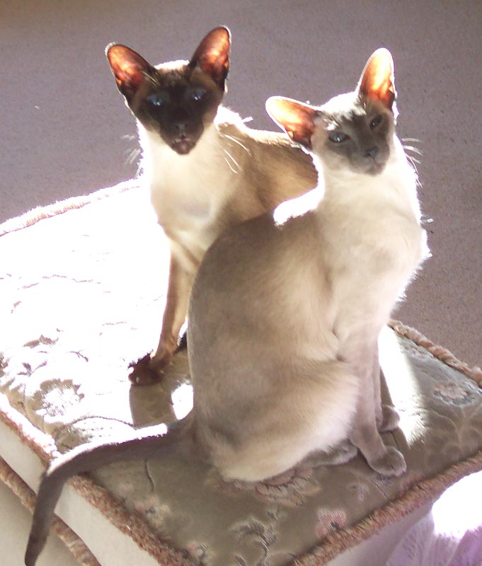 When I look at the picture above, it makes me start singing, We are Siamese, if you please.  We are Siamese, if you don't please.  Now I have to go dig out my Lady and the Tramp laser and watch it, so I can remember the rest of the words.  BTW, Diasy wants your kitties to come over and play.  Woof!