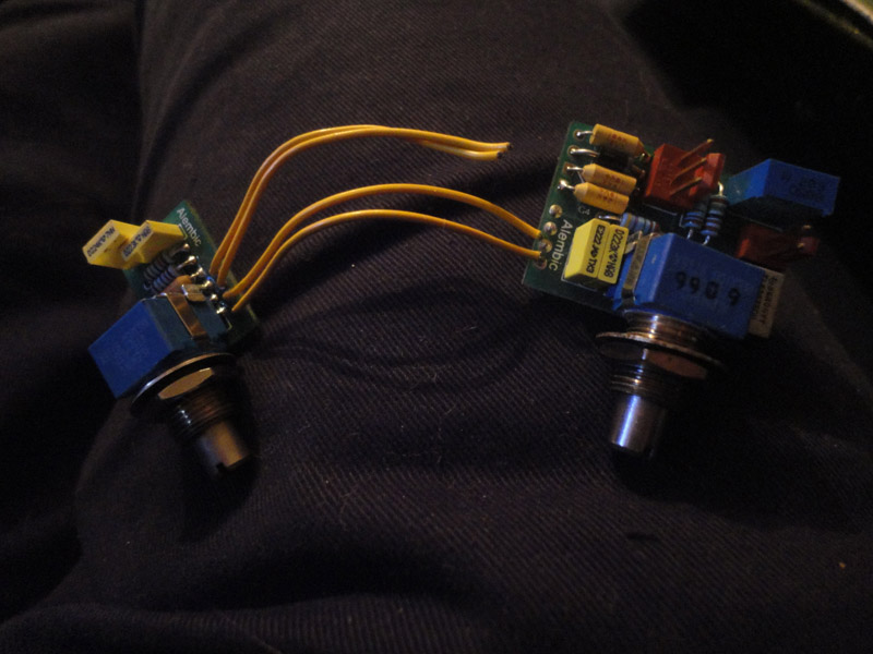 When trying to fit the components two wires came loose on the treble/bass boards:
