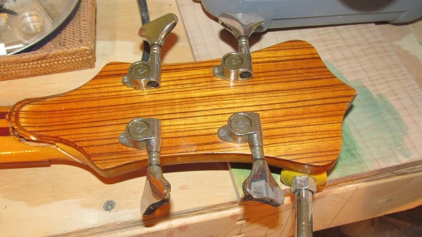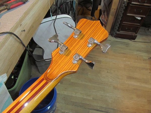 Man, thanks a lot. Mica has written back to me a couple times. Obviously Alembic works 7 days a week just like I do... Here are a couple before and after photos of the headstock. .Chris Herrod at LMI was kind enough to take the time to perfectly match the top plate, which we replaced with new zebrawood, as the break went all the way through the faceplate. After aging the finish, we ended up with a perfect match. My client doesn't want to alter the internal wiring, so I'm making a cable for him to plug and play mono, as per his wishes. Thanks for all the help, man. Wish I could keep this bass. Bass is my main instrument....