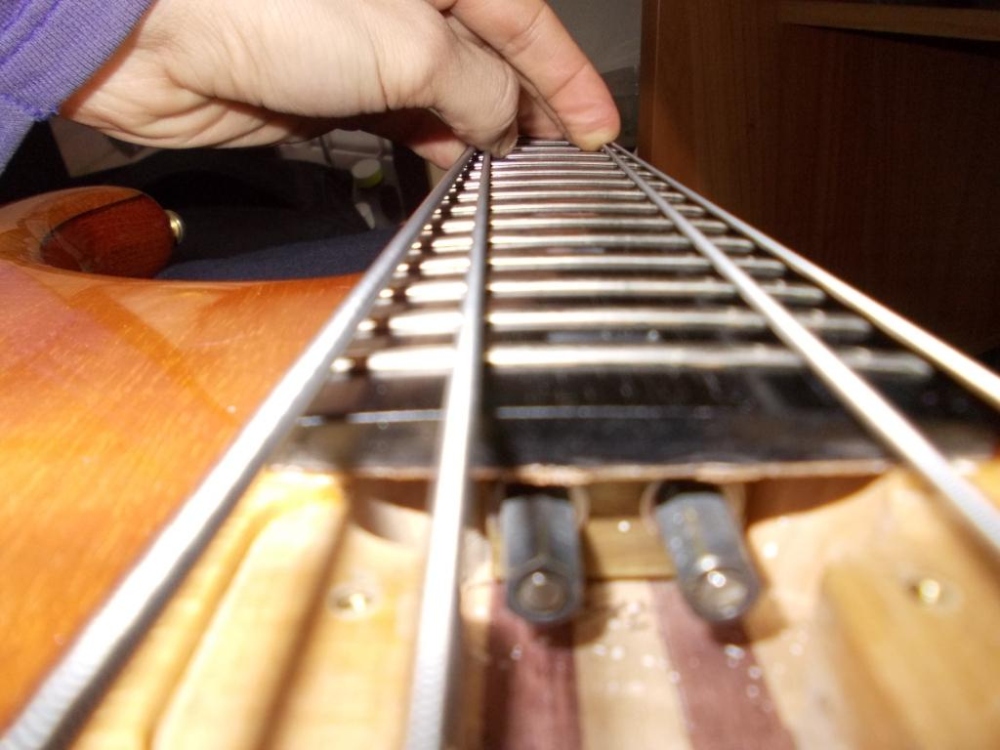 And, if the truss rod is real tight, it will bow the neck back pretty badly. This is not good. Both of my Alembics barely have any force on the nuts on the truss rod. In fact, my fretless just barely has the nuts on.