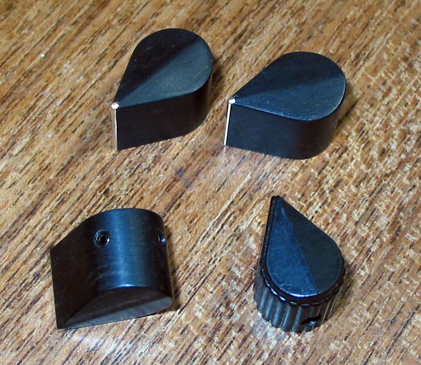 I asked David J. King to make me some replacement knobs for my old S II, and to make em out of ebony and gold.  The above pictures are them in the rough.  He polished them up and I lemon oiled them tonight and put a set on the new to me bass I got and dang!  They really look great.  at first they look just like the regular knobs, but when you look closer they are little works of art.  David really does do wonders with wood, big or tiny.  (Message edited by poor_nigel on December 15, 2009)