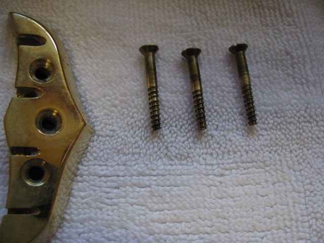 Lenny d..think I would order some s/steel one from Alembic or find a fastener supplier who can do the exact replacements..I am sure they will be common sizes. As said before brass looks nice but not a good engineering fixing.