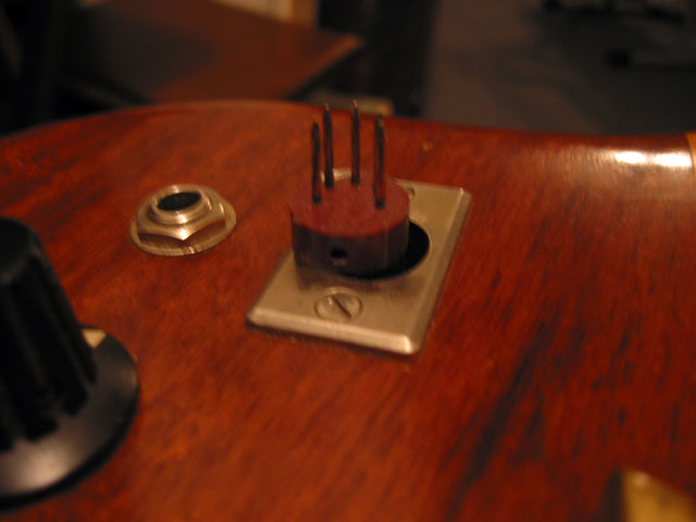 I was practicing yesterday and heard a scratchy noise that makes you think your cable is going bad... But it was the my right angle 5 pin plug that was moving. Obviously the insert was loose so I took off the back plate and tightened the strain relief screw but the hole in the insert is stripped. I thought about a bigger screw but I'm afraid it will crack the insert. I don't want to glue because you have to be able to remove the screw. I'm thinking about putting epoxy in the hole and let it harden, and since the existing screw is self tapping that should work. Does that sound like a good plan? Howierd