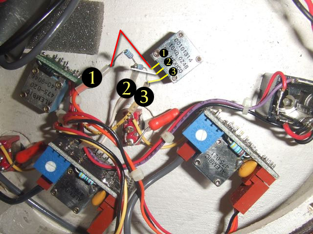 The terminals of the pot are probably still on the end of the wires I have labelled. You should not have them in the wiring when you reattach the terminals.