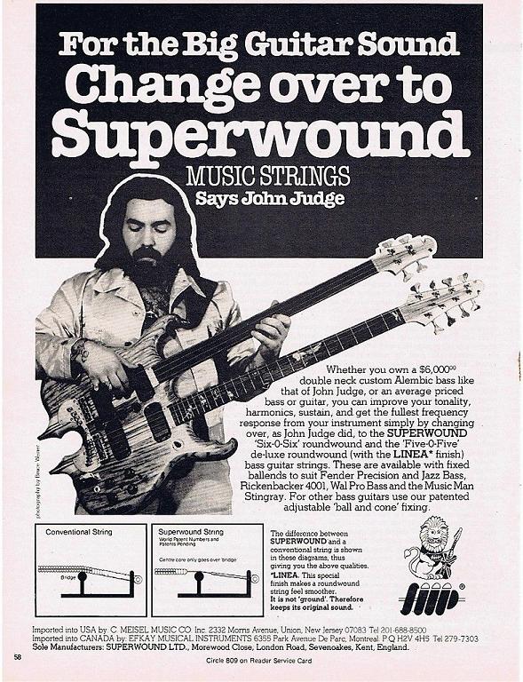 And lastly, I would love to find a John Judge Superwound poster to buy (I have the original ad already). I would also love to have any shots of this bass being played live but I don't think many exist. Thanks to anyone that can help here.
