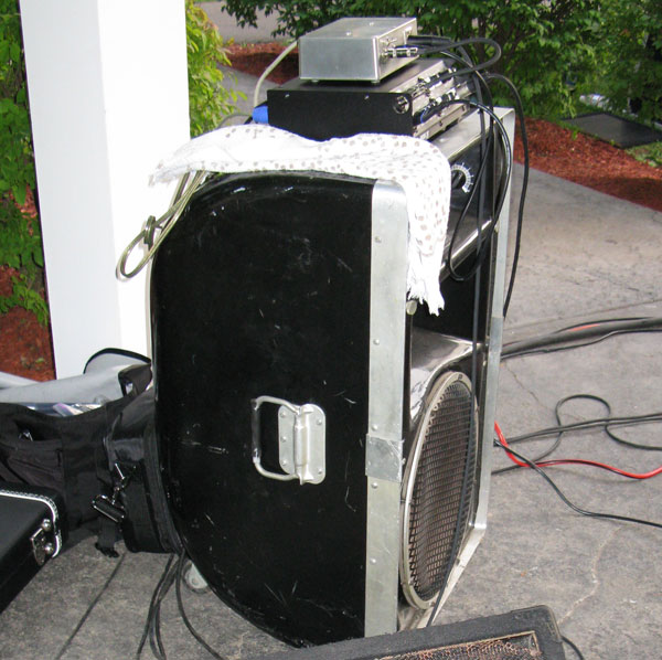 Same cab w. a DS5 copy into an Acoustic Image Focus 2R III (just a great little amp!!!!), @ the Clinton Music Fest 8/23/08. Also have a Schroder 1212L and imagine I will get another for the big rig, they sound ok and really cut (miss my Acme Low 2B for quiet stuff though).