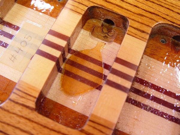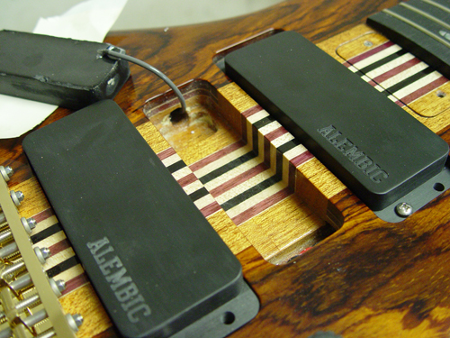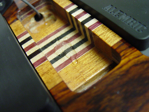 Oh look! I nice empty cavity just waiting for a hum canceller. It's a good idea to do a dry fit to see if the pickup will be flush or if you'll need to make some shims to hold it in place while the adhesive dries.