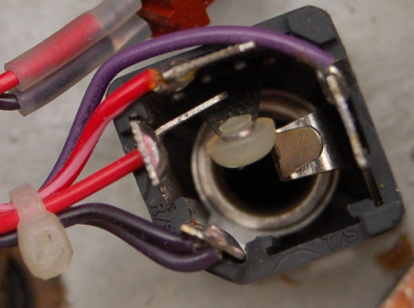 As you can see from the jack there are 3 wires (red, black & purple) going to the volume control and then red and black to the battery. The problem is, I havent seen a jack socket like this one before and I use a mono jack plug.   Hope this helps to clarify things a bit.   Cheers  Rob