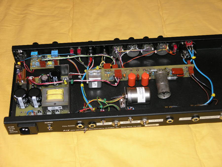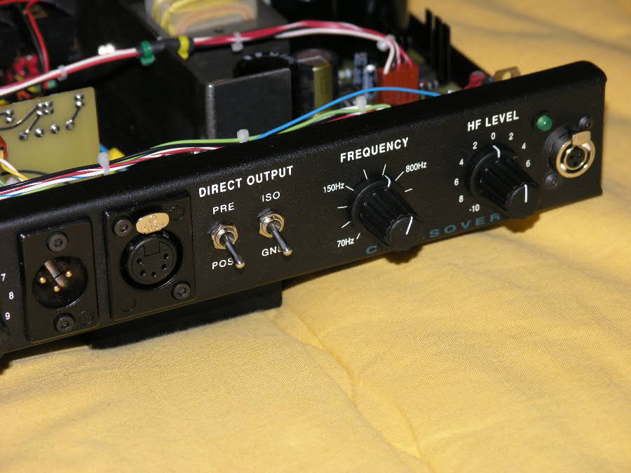 The shot below shows a few of the other things I have done to this one, including:  - a balancing transformer for the main full range output,  - doubled up main output jacks to enable driving two channel amps without too much fuss,  - ground lift switch to the right and phase reverse switch underneath. This latter is handy when  the main output is used with one of the cross over outputs.  - the DEEP swithch moved to the back (the switch does not get used all that much)  - further to the right there is a line (active) input, which when in use will disconnect the Series input on the fron panel.  - still further to the rignt I have replaced the so often discussed and notorious Effects Loop Return jack, with one that has gold plated contacts, so on the long term it might prove to be more reliable.  - although it cannot be seen here, on the front panel just above the two original input jacks I installed an input selector switch, to select between the original and added inputs.  There are some other beefed up bits here and there, and for the time being it is running quite well.
