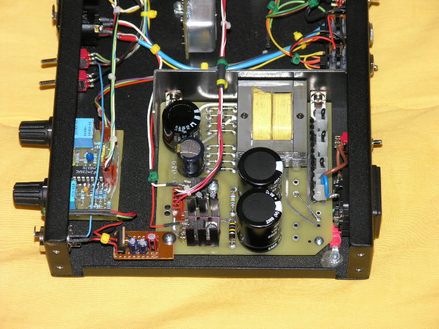 On the photo below you can see the little local regulator for the 9V supply, and the blue wire going to the Pre/Post switch.