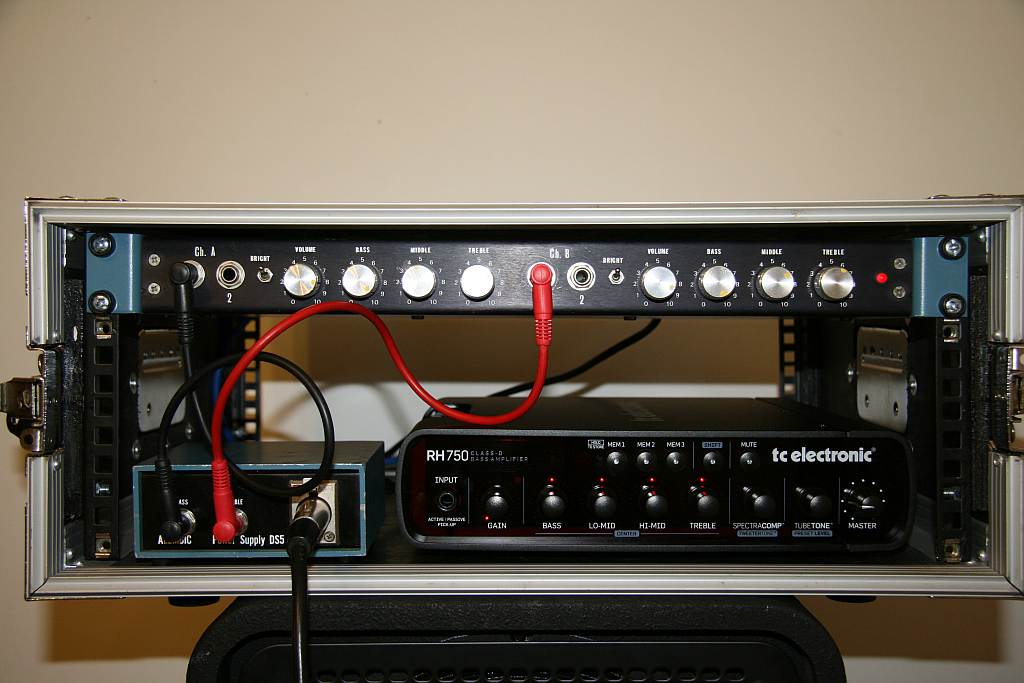 My all time favourite way to configure my rig is as per below. I have a QSC amp which is way lighter than the Soniq power amp I also have.