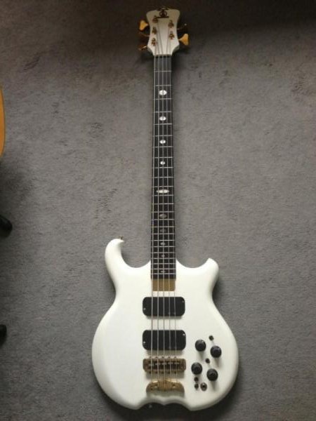 The bass has 2x vol, 2x filter, 2xQ switches (3position) and a standby switch. It's mono out only, uses one 9V battery and features 2 adjustable trimpots inside the cavity for input gains of the two PUs.