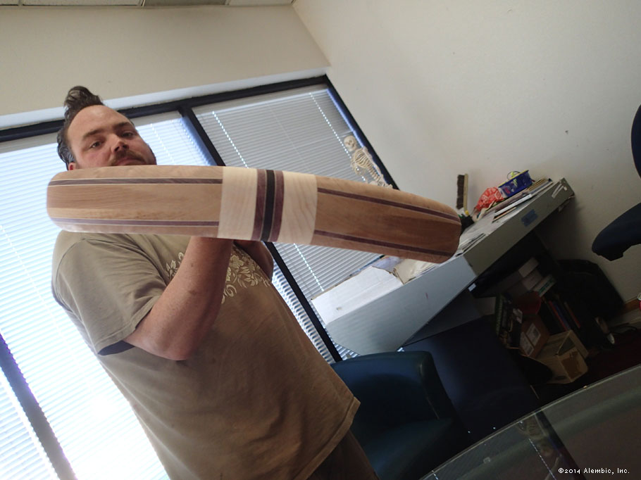 I spent several hours talking with Susan about my design and relied on her knowledge, expertise, and artistic talent to guide me to the final specs. This was one of the most enjoyable design experiences I've ever participated in. Not only did she work to realize my vision, she led me to options I had never thought of. It's obvious that she was not only designing a bass for me, she was making it the best it could be since it is, after all, an Alembic. After we both signed off on the design, the order was placed in January.