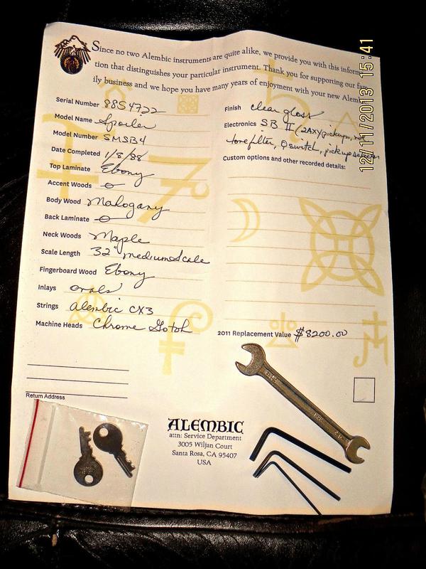 The only details that aren't recorded above is the top says Macassar Ebony (Mary added this distinction later, she must have seen the bass or a picture) and the hardware is chrome plated.