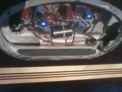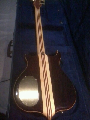 first owner was a dentist from germany i think; with a lot of custom-made; i bought my first alembic from the second owner in a good condition and great feeling with 5 strings.... yes adriaan, it seems like converted from medium to long scale; under this last cover goes no cabel to the electronic... perhaps a secret alembic safe...;-)...or fixed for an 3. pickup?.. 1.pickup comes around 1,8 inches,2.one comes 4,8 inches from the neck.