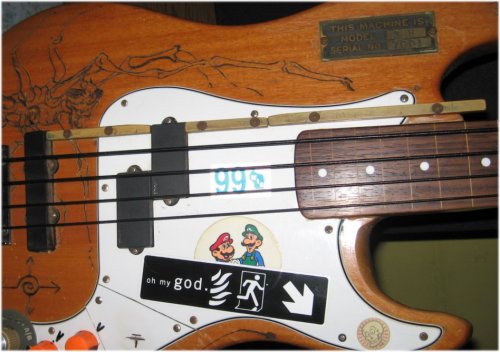 That fretless was a 'Frankenstein Bass' from birth so adding widgets and rails was a no brainer, , ,  especially with the ability of taking an entire vacation on it!