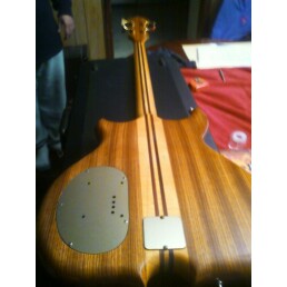 There's no details on the birthday, but from the photos you've already posted, I can confirm that the top and back is Zebrawood. It's perfectly quartersawn and is exhibiting s lovely ribbon stripe figure in addition to the contrasting lines of Zebrawood - really pretty! The neck is Maple and Purpleheart, and the fingerboard is Ebony with mother of pearl oval inlays.
