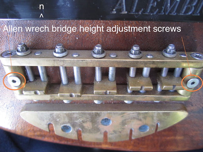 There are right and left height screws for the bridge as a whole, and individual intonation adjustment screws per-string. The slots and saddles follow the radius of the fingerboard, to it sets up pretty easily.