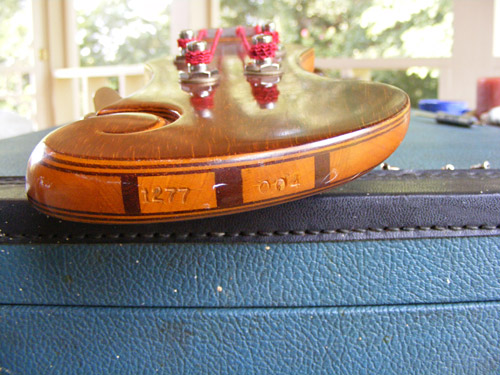 The neck inlay is gorgeous. I was thinking Hyak when I first saw it but the headstock doesn't look like any I have seen. I was also wondering if it might be a Becvar but again I have not seen one with this headstock style. As I recall both were known to buy parts from Alembic. The style of the serial number also looks familiar but I can't remember where I saw it.