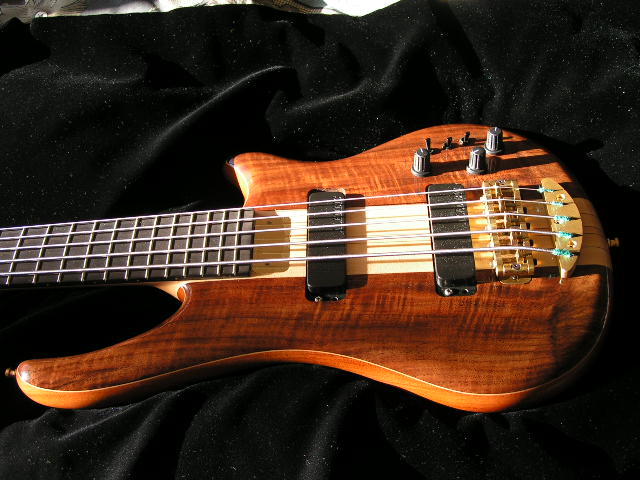 through body neck: 5-piecce Maple with 4 Walnut pinstripes, 34 long scale